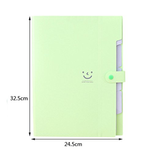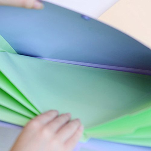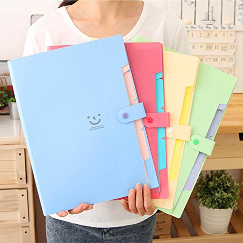 -. Brand : HMANE -. Feature : .Candy Color design with smile face pattern, showing your smile every day / .5 pockets for easy subdivision / .Made of high quality PP plastic, Waterproof and Dustproof Protect your documents with durable. / .Snap button closure premium safety guarantee! Anti-lost and no damage at all / .Can be used to hold the A4 papers/documents/files/pens/other little stuff in your home or office -. MPN : 1713593646020 -. PartNumber : 1713593646020 -. ProductGroup : Home Improvement -. ProductTypeName : HOME_ORGANIZERS_AND_STORAGE -. Title : 5 Pocket Expanding PP A4 Size Paper File Document Folder Holder Organizers Storage Wallet With Snap Button Stationery Office School Supplies - Random Color