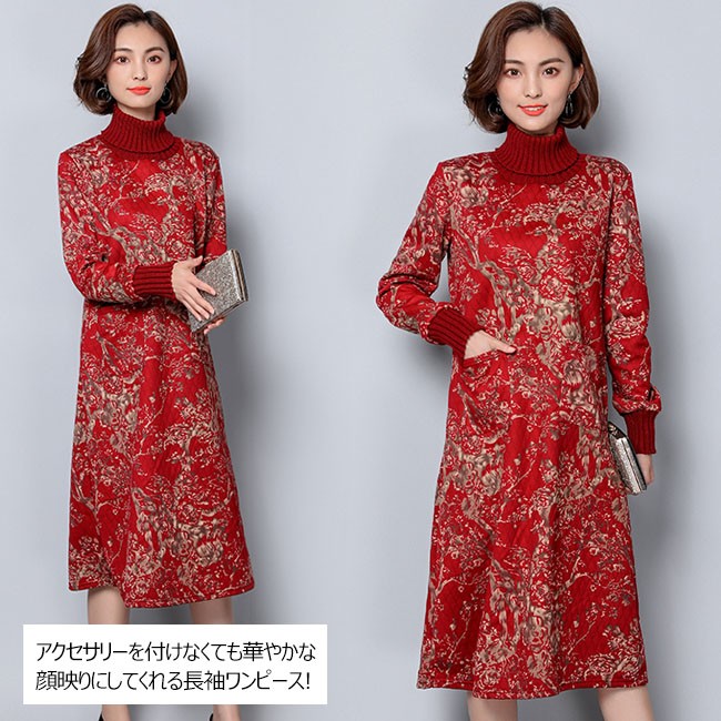 | 商品名 | ワンピース レディース 厚手 民族風 暖かい チャイナ風ワンピース ミモレ丈ワンピース タートルネック ゆったり カジュアル 秋 冬 2018春新作 |