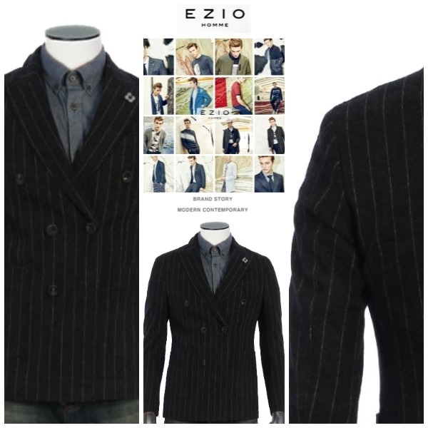 쵸크핀 스트라이프 챠콜그레이 더블 자켓.