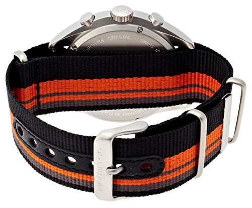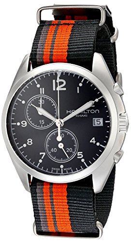 -. Binding : Watch -. Brand : Hamilton -. Department : mens -. EAN : 7640127756560 -. Feature : Watch featuring round black dial with 60-second and 30-minute subdials, date window at 3 o'clock, and luminous markers / 41 mm stainless steel case with antireflective-sapphire dial window / Quartz movement with analog display / Striped canvas band with buckle closure / Water resistant to 100 m (330 ft) -. Label : Hamilton -. Manufacturer : Hamilton -. Model : H76552933 -. MPN : H76552933 -. PackageQuantity : 1 -. PartNumber : H76552933 -. ProductGroup : Watch -. ProductTypeName : WATCH -. Publisher : Hamilton -. Studio : Hamilton -. Title : Hamilton Men's H76552933 Khaki Aviation Stainless Steel Watch with Striped Canvas Strap