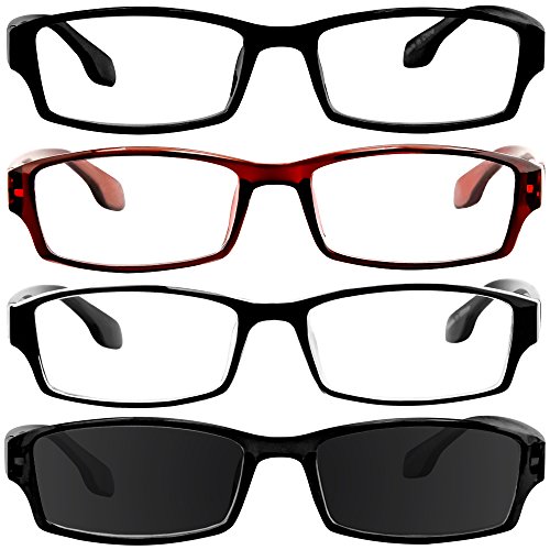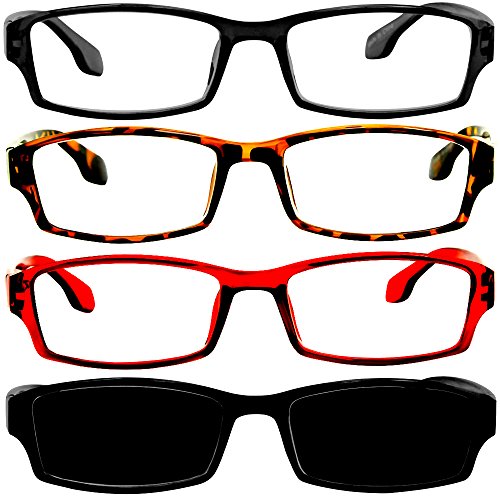 Reading Glasses Best 4 Pack_Black Tortoise Red & Sun Readers for Men & Women_Have a Stylish Look & Crystal Clear Vision When You Need It!_Comfort Spring Arms & Dura-Tight Screws_100% Guarantee +4.00