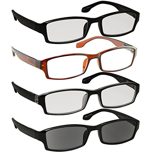 Reading Glasses_Best 4 Pack _ Black Brown Tuxedo Sun Readers for Men & Women_ Have a Stylish Look & Crystal Clear Vision When You Need It!_Comfort Spring Arms & Dura-Tight Screws_100% Guarantee +4.00