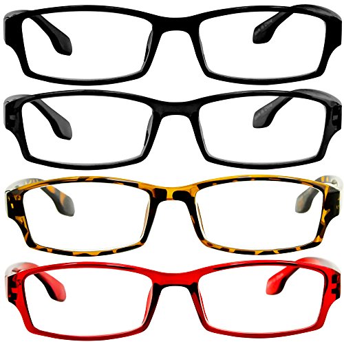 Reading Glasses _ Best 4 Pack_Blue Tortoise Red Black for Men & Women _ Have a Stylish Look & Crystal Clear Vision When You Need It! _ Comfort Spring Arms & Dura-Tight Screws _100% Guarantee +3.25