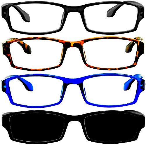 Reading Glasses Best 4 Pack_Black Tortoise Blue & Sun Readers for Men & Women_Have a Stylish Look & Crystal Clear Vision When You Need It!_Comfort Spring Arms & Dura-Tight Screws_100% Guarantee +4.00
