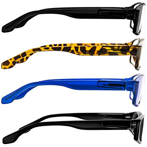Reading Glasses _ Best 4 Pack _ 2 Black Tortoise Blue for Men and Women _ Have a Stylish Look & Crystal Clear Vision When You Need It!_Comfort Spring Arms & Dura-Tight Screws_100% Guarantee +3.00