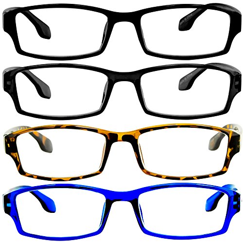 Reading Glasses _ Best 4 Pack _ 2 Black Tortoise Blue for Men and Women _ Have a Stylish Look & Crystal Clear Vision When You Need It!_Comfort Spring Arms & Dura-Tight Screws_100% Guarantee +4.00
