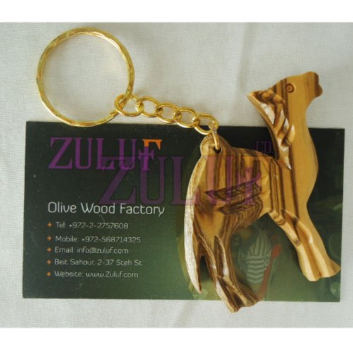Studio : Zuluf Publisher : Zuluf Binding : Office Product Product Description olivewood Olive Wood Carved Camel Key Chain from bethlehem Israel (OW-KC-006) If you are looking for the perfect Christian gift for yourself or someone you love, then look no further than this wonderful Olive Wood Camel Key Chain available from Zuluf. This key chain was hand carved by Christian artisans in the Holy Land, who pay attention to even the slightest of details. The craftsmanship is amazing and you will be astonished at just how lovely the natural olive wood is. The meaning of this symbol is also powerful, because the camel is an important part of Christianity and is mentioned many times throughout the Bible. It is the symbol for temperance and John the Baptist. Dimensions (H X W X L) : 0.6 cm x 5 cm x 5.5 cm / 0.24" x 1.97" x 2.17" Olive Wood Hand Carved Wooden Key Chain 0