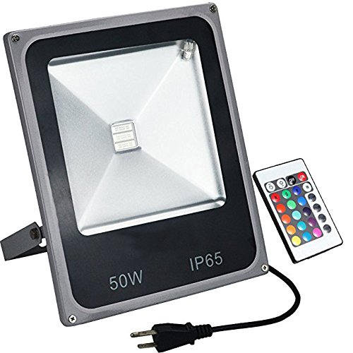 - MULTI-COLOR & DIMMABLE:RGB led flood light 50W have 4 main colors Red, Green, Blue, and White. Total 16 color tones4 main colors Red, Green, Blue, and White. Total 16 color tones, Wide beam angle 120°