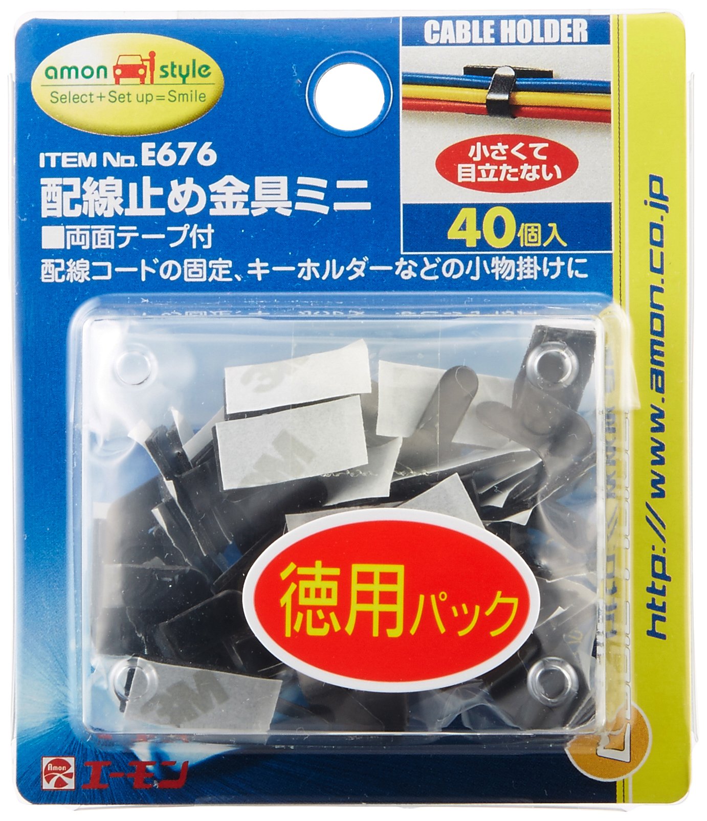 Amon E676 Car Wiring Organizer Fastener Wire Clip Cable Holder Black - 40Piece 8mmX15.5mm