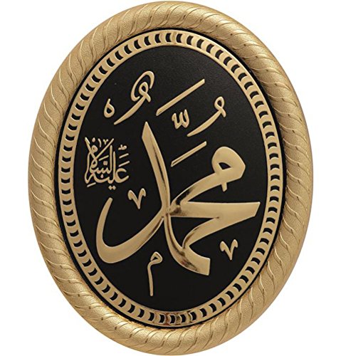 Islamic Gift Acrylic Decor Oval Plaque 7-3/8 x 9-1/4 inch Gold and Black 'Muhammad'