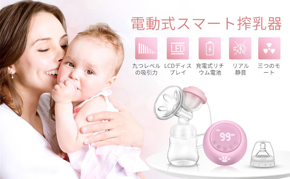 各モートが九つのレベルを調節できて、赤ちゃんの状況とママのコンフォートにより強さを選んできて、もっと快適に搾乳しています。