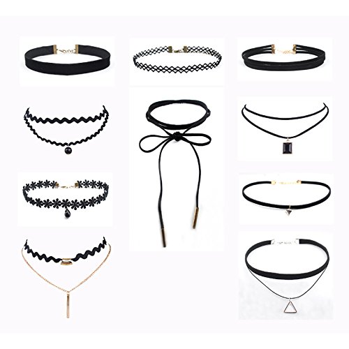 -. Title : 8-10PCS Womens Black Velvet Choker Necklace for Girls Lace Choker Tattoo Necklace for Girls|EVERRICH