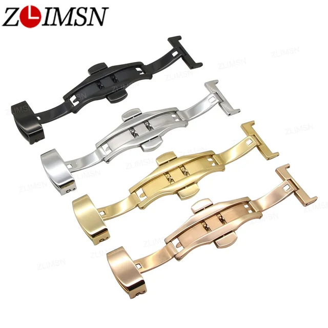ZLIMSN 316L 솔리드 스테인레스 스틸 나비 버클 시계 줄 배포 걸쇠 실버 골드 블랙 12 14 16 18 20 22 24 미리메터
