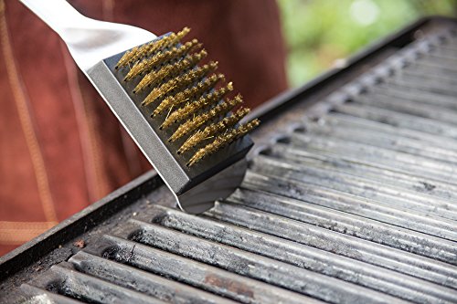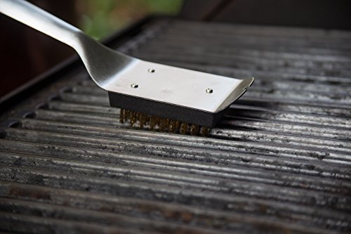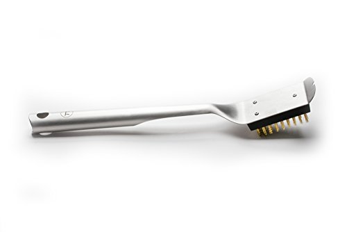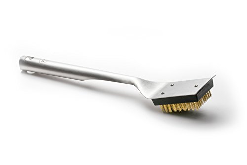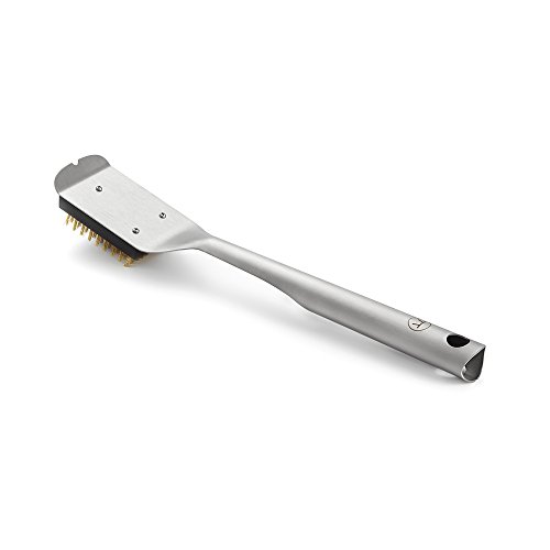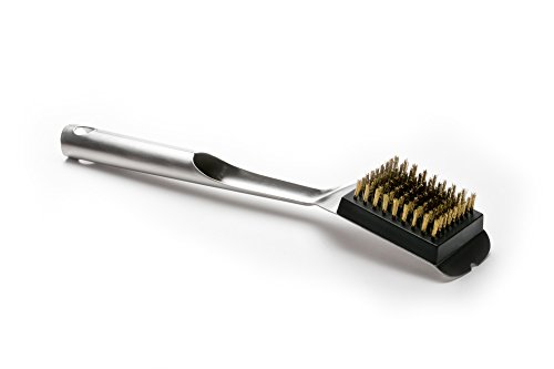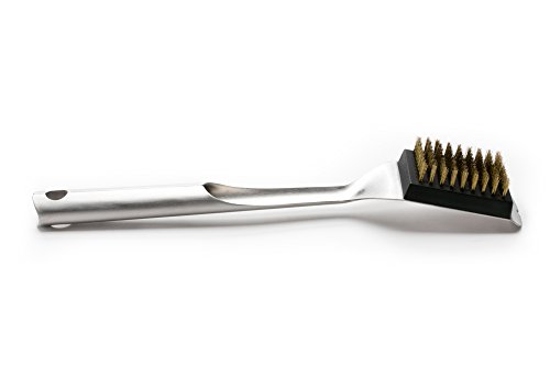 Studio : Outset Publisher : Outset Binding : Lawn Patio Product Description This grill brush is a brilliant example of elegant, durable design. Its brushed stainless-steel and streamlined form reflects the beauty of focused simplicity. The brass bristles are safe on all grill grate surfaces, and the entire tool is completely weatherproof. No bells or whistles, just pure style and pure utility. 0