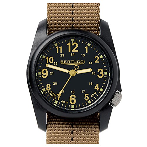 -. Title : Bertucci 11041 DX3 Field Resin Dash-Striped Drab Khaki Nylon Strap Black Dial Watch