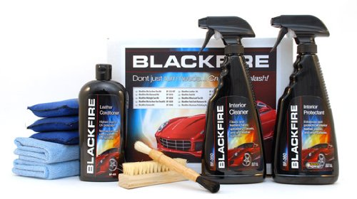 -. Feature : BLACKFIRE waxes and sealants wipe on and buff off easily without streaks or hazy patches and with a shine that can last for six months or more. / Every BLACKFIRE product is hand made in very limited production runs. / Contains: 20 Oz. Blackfire Interior Protectant, 20 Oz. Blackfire Interior Cleaner, 16 Oz. Leather Conditioner, 2 Microfiber Towels, 1 Wood Grip Scrub Brush, 1 Two-way Mini Detailing Brush and 3 Microfiber Applicator Pads. / Retail value of the kit is $105.90, giving you a savings of $25.91!
