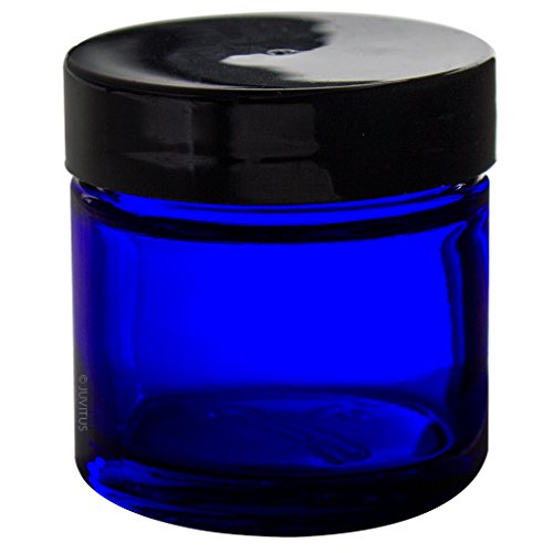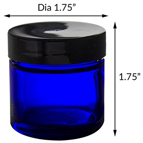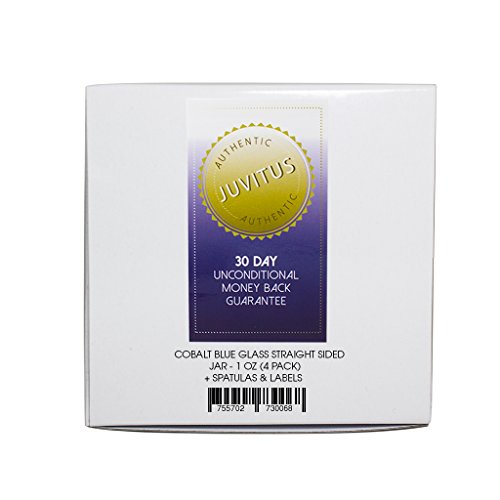 Cobalt Blue Glass Straight Sided Jar - 1 oz (4 Pack) + Spatulas and Labels - BPA Free, Airtight, Smell Proof
