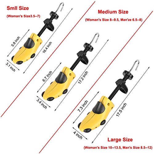 Studio : MoonSpect Publisher : MoonSpect Binding : Misc. Product Description We all can agree if your shoes are comfy that's a good start to your day. Well don't you worry, we are here to help. If your shoes are causing discomfort, you may want to start using a shoe expander. Why Use Shoe Stretchers There are several reasons one might find a need for shoe stretchers - shoes can shrink; feet can swell; we can land between two sizes; and bunions, corns or other foot imperfections can make our shoes hurt. And when our shoes hurt, life can be pretty miserable. Luckily, there are shoe stretchers, and they can help alleviate several of these problems and deliver a more comfortable shoe. Shoe stretchers can expand the width and the length of shoes. For both benefits, in one device, you'll want to be sure to purchase a "4-way" shoe stretcher. Come with little built-in holes. Plugs inserted into the holes can stretch the shoes in problem spots, like where a corn or a bunion is, or where pinching occurs. A 4-way shoe stretcher will stretch length and width; a vamp or instep stretcher will lift the part of the shoe that sits on the top of your foot; and toe stretchers will help to lift the toe box of the shoe, providing more height for your toes. There are also boot stretchers that will help stretch the shaft of a boot, making more room for your legs. Fit shoes The shoe stretcher fit sandals, flats, casual shoes, canvas shoes, sports shoes, high heels (<6cm) and peep shoes. How to use: a.Insert shoe stretcher into shoe with the back piece facing down. b.Rotate the knob clockwise, adjust the length. c.Rotate the hook clockwise, adjust the width. d.For best result, please keep shoe stretcher in place for at least 24 hours. e. To remove stretcher, turn handles Counterclockwise. Package Include: 2x Shoe Stretcher 8x Bunion Plugs 2x Pad high plug1x Shoe horn 0