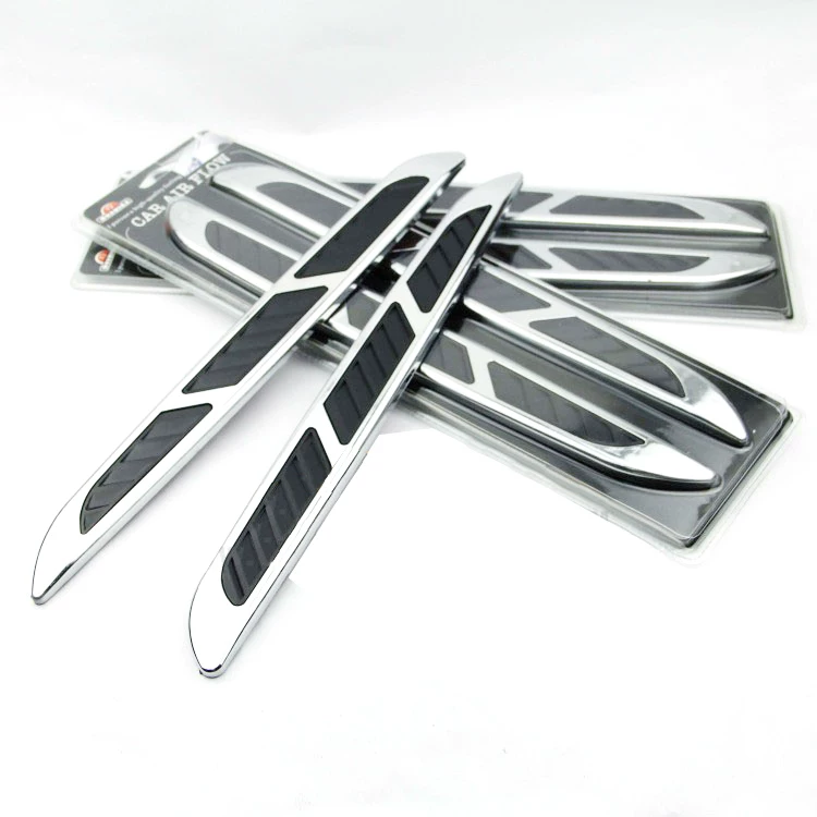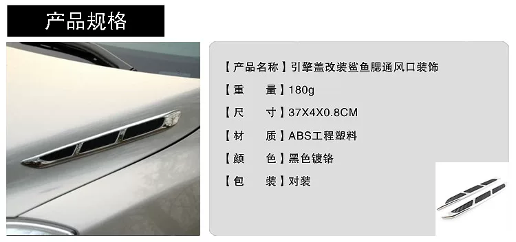 一组二入。颜色:黑色+镀铬。材质为硬质树脂。特殊造型设计,安装容易。具防水,坚固又耐用、不易损坏。背部附双面胶,可装饰于车身曲面看起来更具有质感。适合各种车型。