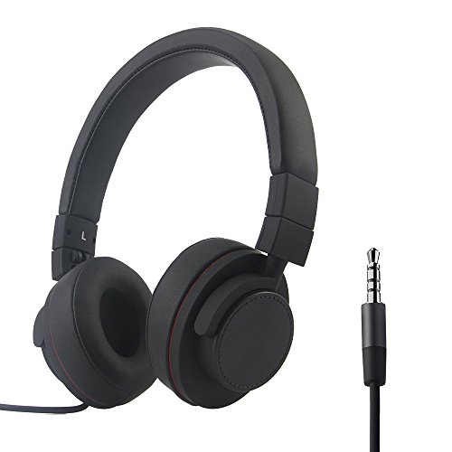 Gorsun folding on ear headphones with mic and volume control for Smart Phones & Tablets(Black)