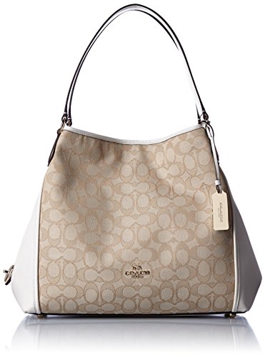 Signature jacquard. Inside zip, cell phone and multifunction pockets. Zip-top closure, fabric lining. Handles with 9 1/2' drop. Imported.