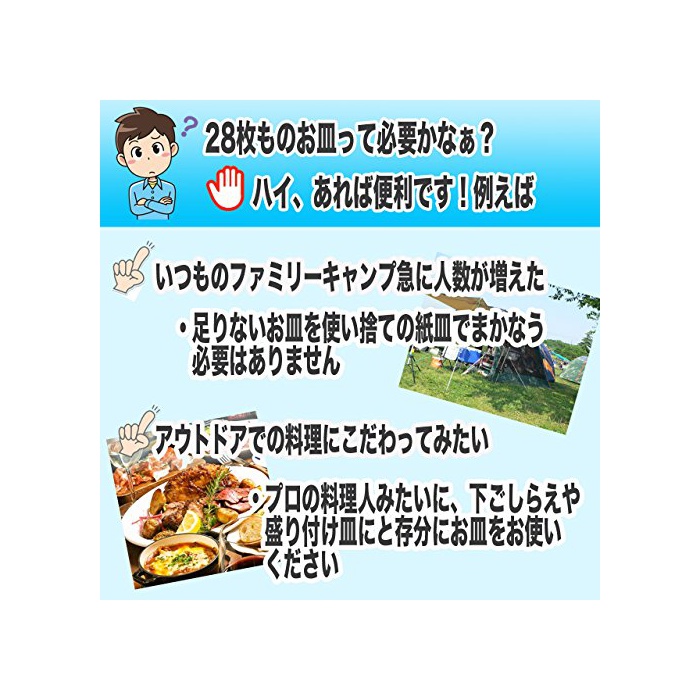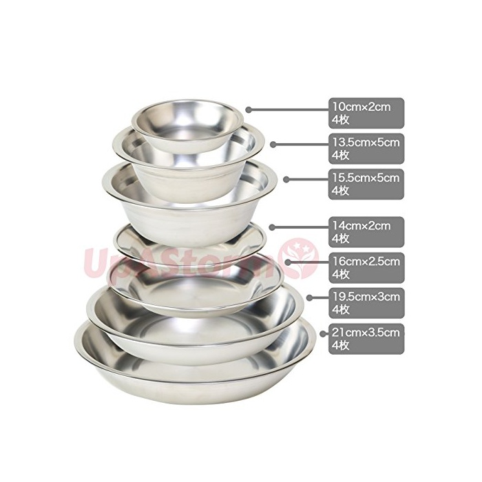캠프나 아웃도어 에서의 식사,바베큐 등에 최적인 스테인레스 (dish)디시 세트 대소7종류×각4 매합계28 매세트!
