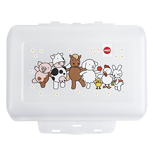 Emsa Sandwich Box "Variabolo" with Farm Family Decor 6.3 x 4.3 x 2.8",, Transparent/Green