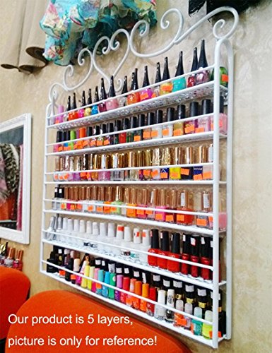Metal wall mounted nail polish rack easily can be hung over walls, made with High Quality Metal. you can separate and organize your nail polish or essential oils so you never have to search through cluttered bottles of nail polish in drawer again.