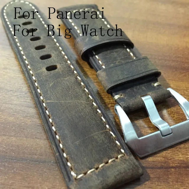| [해외]22 미리메터 24 미리메터 라이트 브라운 부드러운 복고풍 클래식 정품 가죽 시계 스트랩 손목 벨트 pam 큰 시계 |