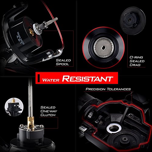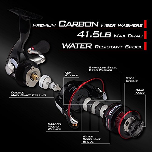 This design has more line capacity for farther casting and fishing the depths for bottom dwellers. The CNC machined aluminum spool has internal groves for lube retention. These superior spinning reels feature a triple disc carbon fiber drag, stainless-steel shaft, and strengthened precision mesh brass gears. The corrosion resistant, MaxiDur 10 1 ball bearings give you smooth, silent action.