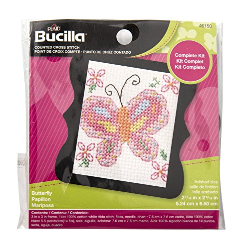 BUCILLA 46150 Counted Cross Stitch Beginner Stitchery Mini Kit, Butterfly