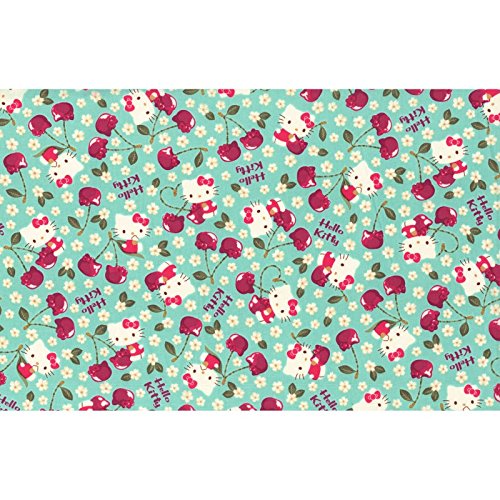 Hello Kitty is in Cherry Land! Notice the cherries are shaped like Hello Kitty! Aqua background. 100% cotton. 43/44" wide.