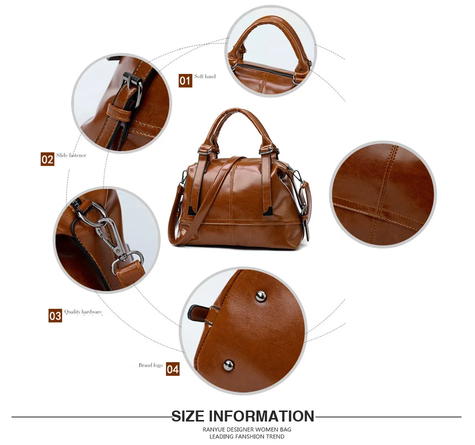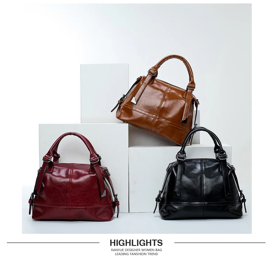 wax oil skin women bag:wax oil leather pu bag ladies hand bags women leather handbags
