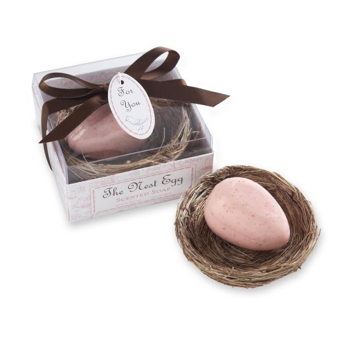 - Pleasantly scented soap is pink or blue with tiny brown speckles cello-wrapped egg