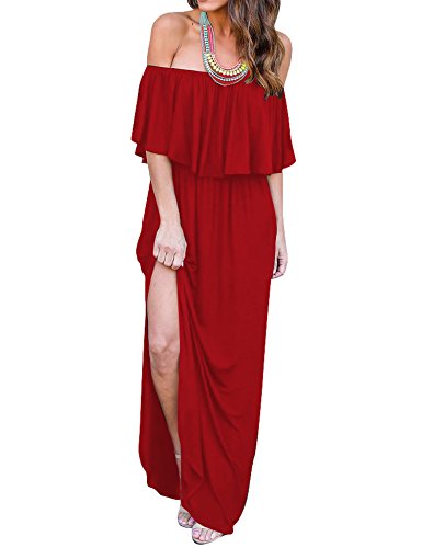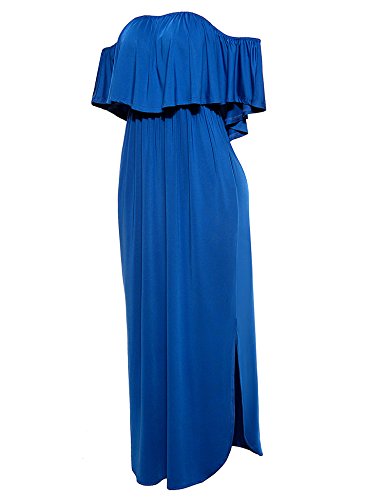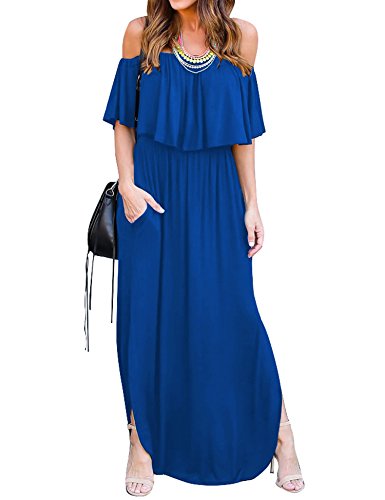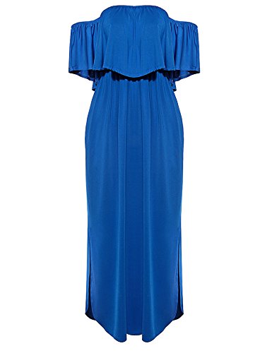 Feature:Off shoulder,Short Sleeve,Ruffles,Tunic Waist,Side split,Loose long maxi dress