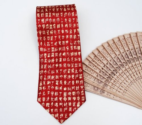 -. Feature : Small Chinese Calligraphy Ties - Burgundy