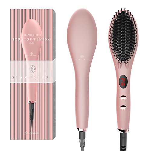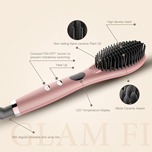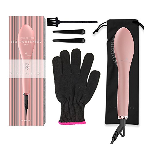 Description Have you ever experienced that panicking moment when you're about to change into a gorgeous dress and you come to realize that your hair is in an absolute mess? When your usual hair straightener is taking too long to fix your messy hair on a Friday night? GLAMFIELDS Hair Straightening Brush could be the answer that you have been searching high and low for! This amazing heated hair brush is specially designed for speed and ease of use in mind, helping women look better for less! Ceramic comb teeth can heats up fast without wasting time on waiting, the straight hair effect can be kept for a few days before shampooing. Double Anion repair rough, bifurcated and damaged hair, make hair a natural, health and sleek look. Adjustable 4 Heat Setting is suitable for all kinds of hair condition and hair style. International voltage, 360 rotating handle, 30 minutes auto off, temperature lock, Small details show the user-friendly design. Mini rose gold body with black combs and high-end gift wrap, best choice for gift . Specifications: Heater: Metal Ceramic Heater (MCH) Temperature range: 330°F to 450°F Warm-Up Time: 30 seconds Automatic Shutoff: 30 Minutes 360°Rotate Swivel Power Cord: Yes Voltage: 120-240V AC Frequency: 50 -60 HZ Power: 68W Package Including: 1 x Hair Straightening Brush 1 x Heat Resistant Glove 1 x Cleaning brush 1 x Cloth Bag 2?x Plastic Hair Clips 1 x User Manual 0