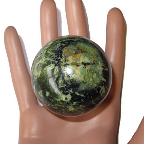 Serpentine Ball 57 Green Snake Skin Crystal Kundalini Gold Flame Energy Meditation Stone Sphere 1.9"