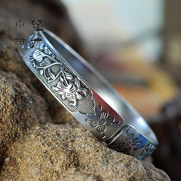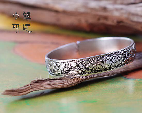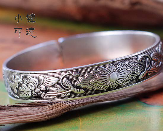 Miao silver bracelet string leaf peony