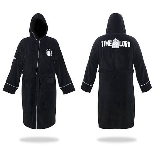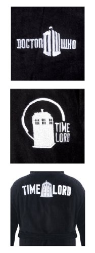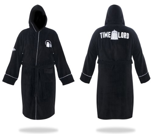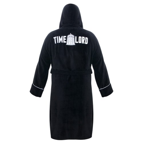 Doctor Who Time Lord Hooded Black Cotton Bath Robe, One Size Fits Most