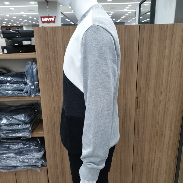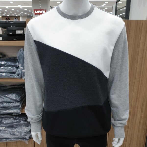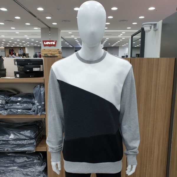 NIX 2019년 봄 신상 입니다. C/P 삼단쭈리 베이직핏. 모노톤의 절개배색을 준 디자인의 맨투맨 입니다. 마네킹 100size 착용