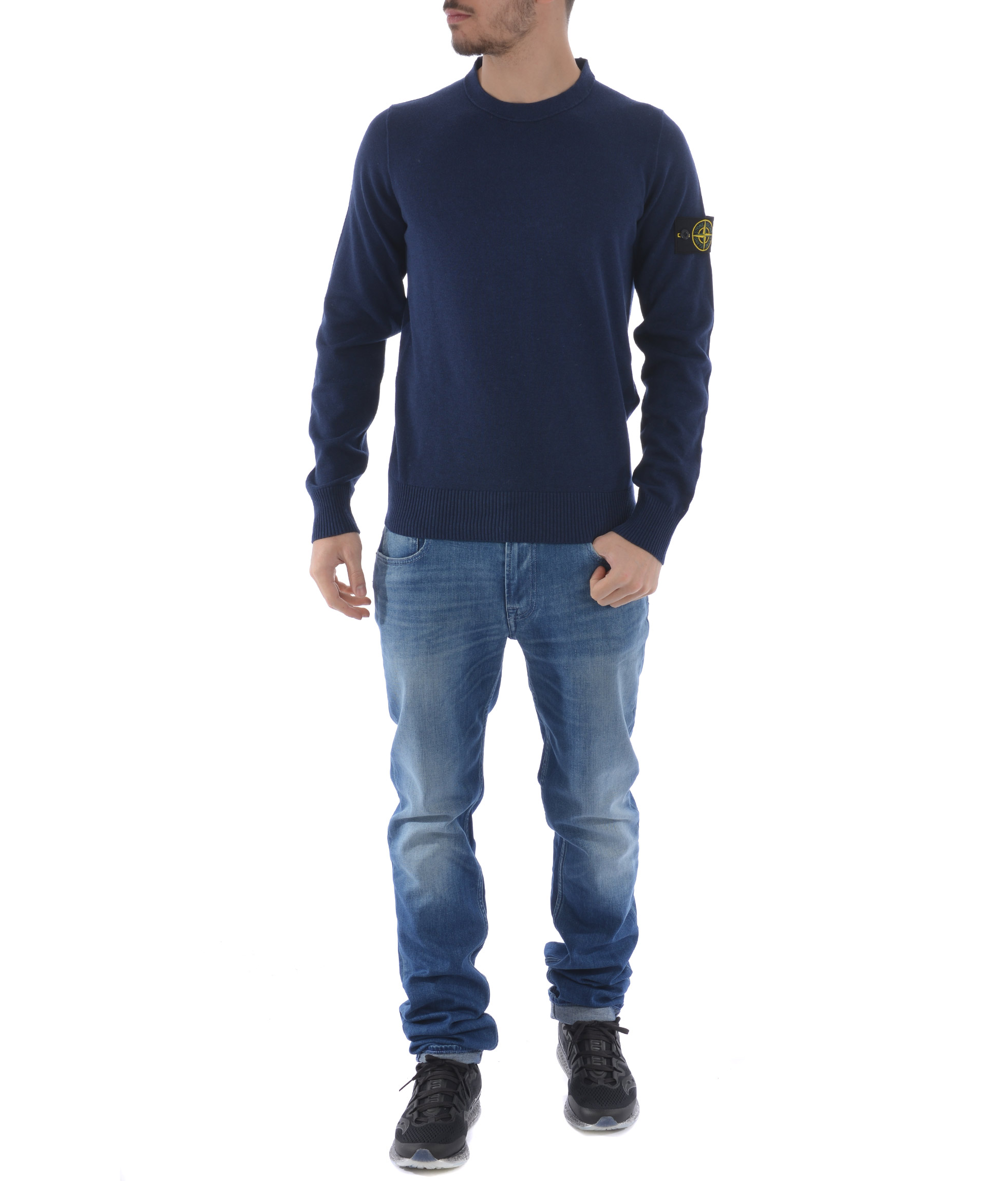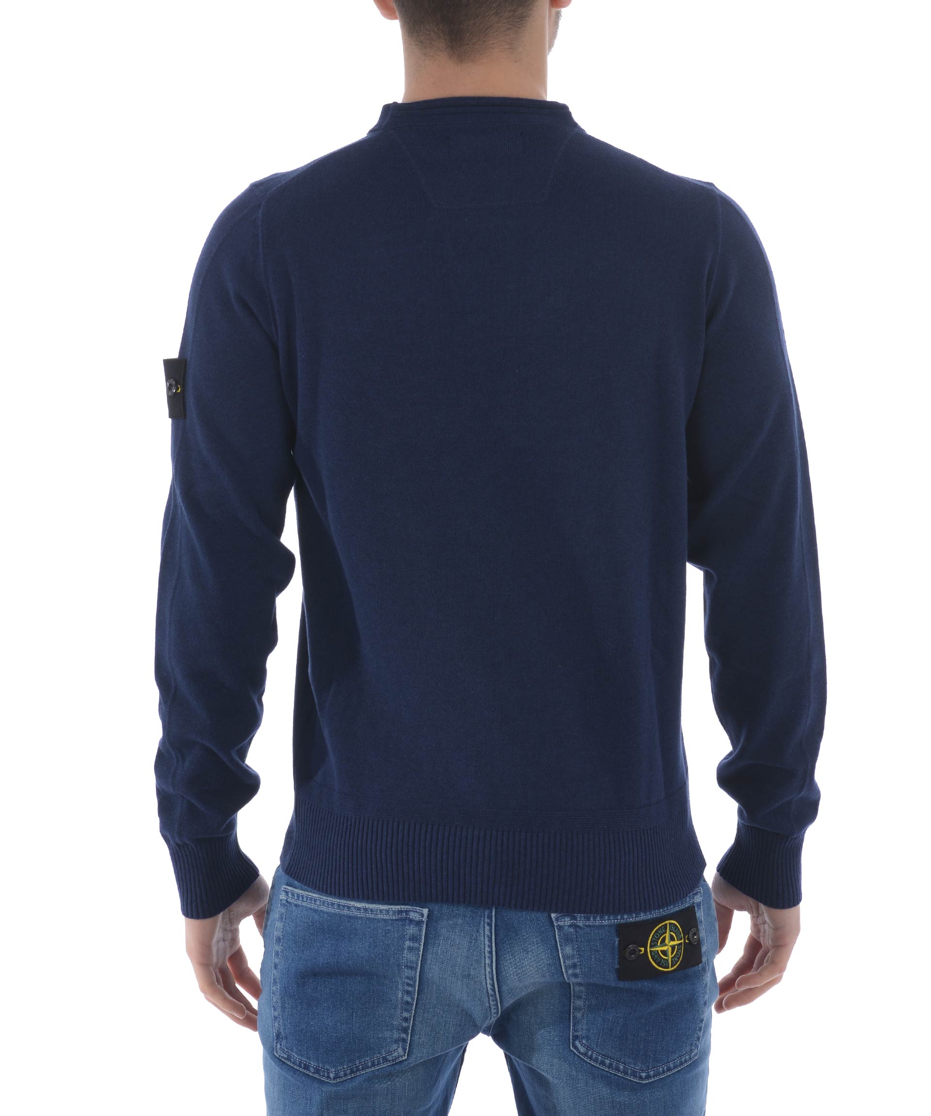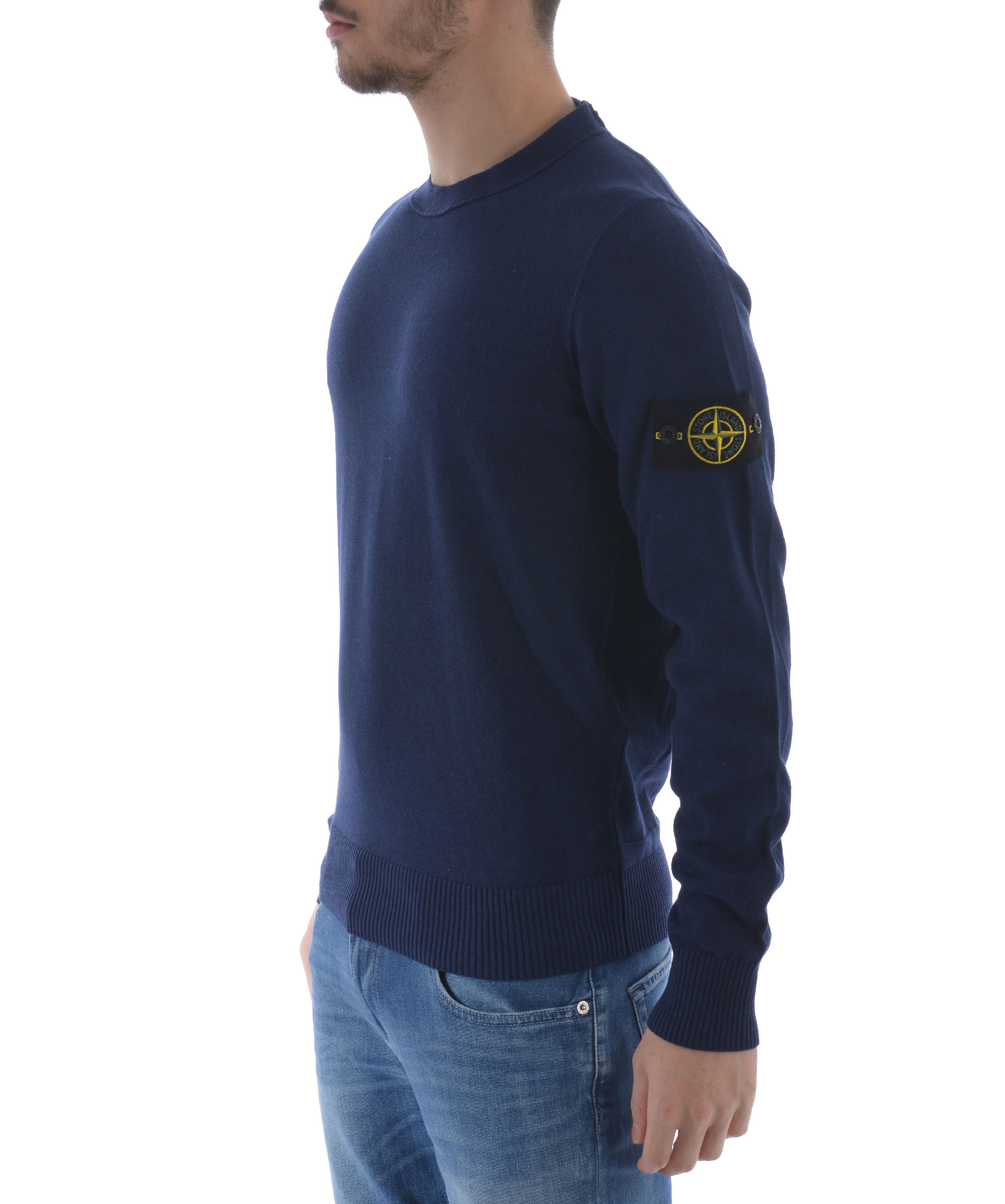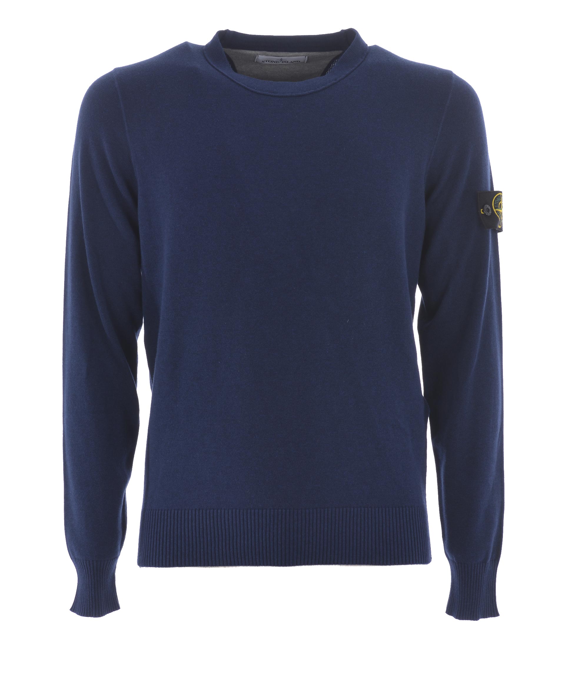Maglia Stone Island in cotone Blu. Girocollo. Manica lunga. Polsi e fondo a costine. Patch logo in lana sulla manica sinistra, removibile. Misura in foto M 100% cotone