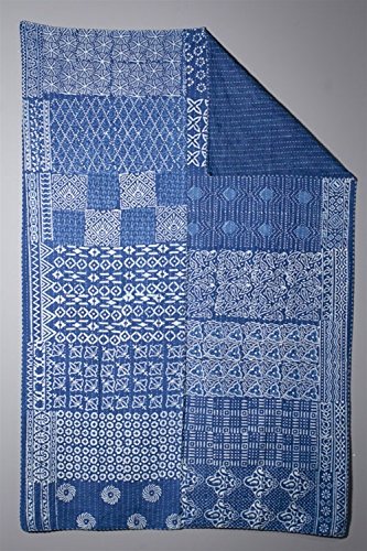 Vagabond Vintage, Indigo Quilted Throw with Kantha Stitch