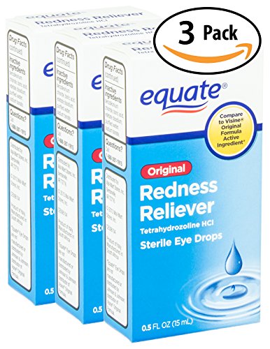 Equate Redness Reliever Sterile Eye Drops 0.5oz Dropper Bottle 3 Pack. Lubricant Gives Long Lasting Relief for Burning, Itching, & Dryness Fast! Cures Red...
