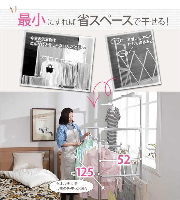 ●【完成品】物干しスタンド 物干し台 室内 タオル 布団 軽量 軽い スリムコンパクト