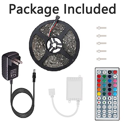 Led strip lights 5050 16.4ft/5m Flexible Led strip Changing RGB TOPMAX NON-Waterproof Lighting with 44keys Remote Cotroller and 12V 3A Power Adapter