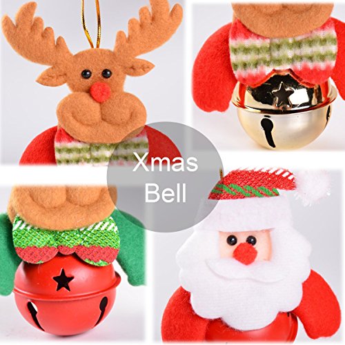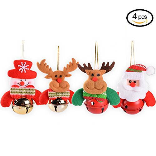 Christmas Bell Ornaments, BearDaDa Xmas Tree Decorations 4PCs Christmas Dolls Bells for Tree Santa, Snowman, Elk, Reindeer