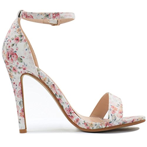 Feature : PU / Open Toe, High Heel, Floral Prints / Cushioned Insole, Non-Slip Outsole, Ankle Strap Sandals / Heel Height: 3 7/8 inches / Platform Height: 3/8 inches