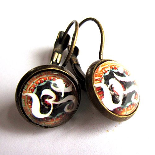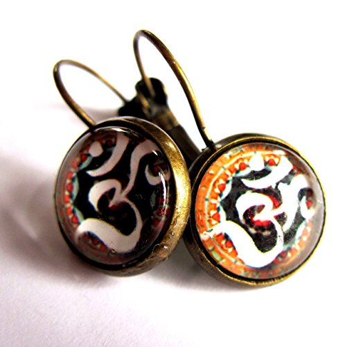 -. Brand : Gimme That Thing -. Color : Black -. Department : Women -. ProductGroup : Guild Product -. ProductTypeName : GUILD_JEWELRY -. Title : Black and White Namaste Om Ohm Yoga Pilates Spiritual Earrings - Glass and Metal Nickel and Lead Free Sensitive Skin by Gimme That Thing