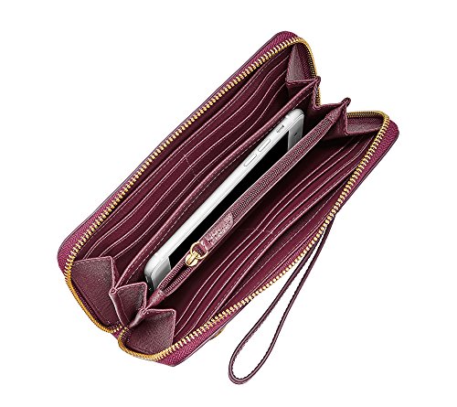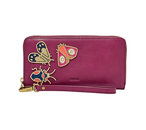 Fossil Emma Rfid Large Zip Clutch Raspberry Wine Wallet